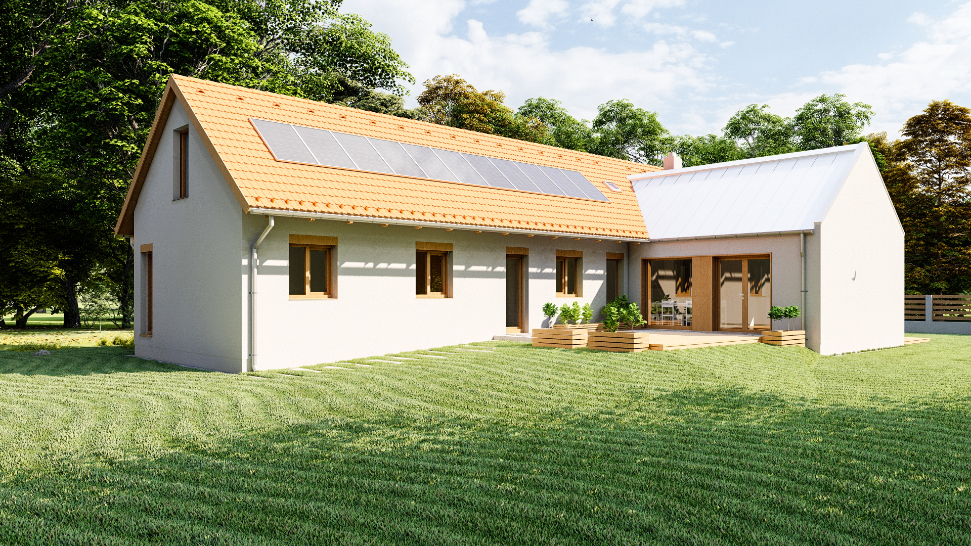 Programterv: 8074 Csókakő. Nagyszülők iránti tisztelet kifejezése egy modern megjelenésű mégis egyszerű épülettel.Megnevezés: