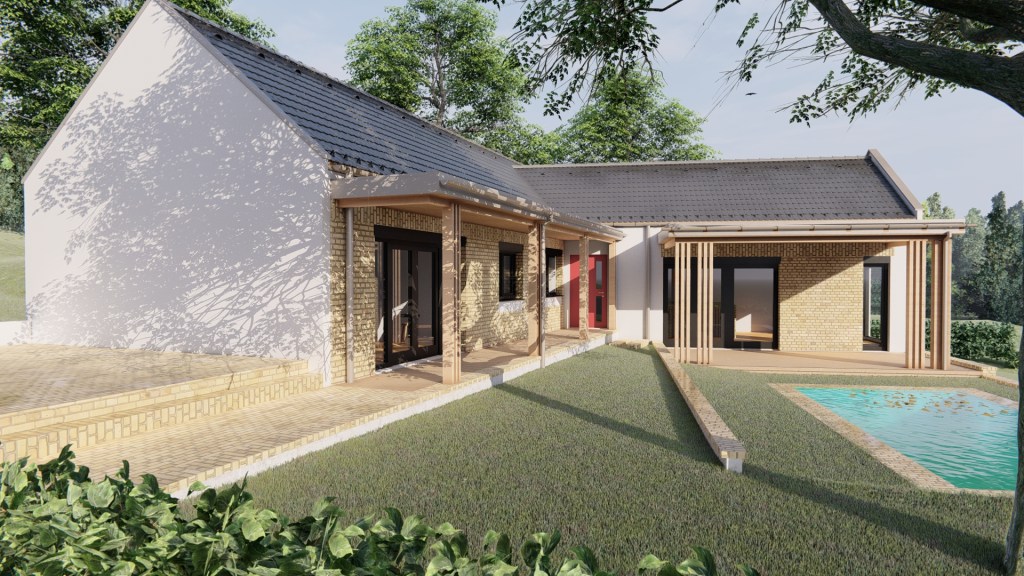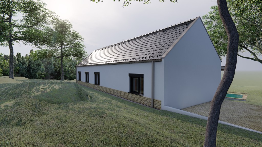 Programterv: 8095 Pákozd. A Velencei-tóra panorámás, ősszőlős, lejtős telekre tervezett, földszintes családi ház, 4 fő részére.Megnevezés: