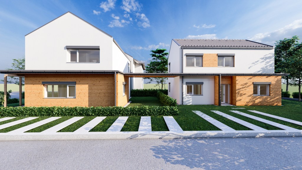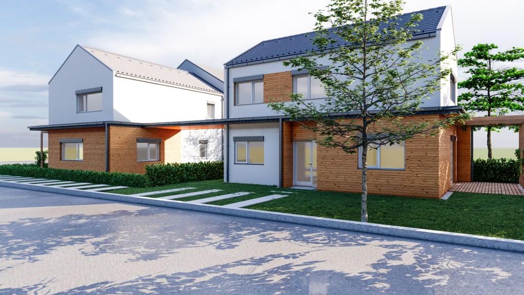 Programterv: 8000 Székesfehérvár, zártsorú lakóingatlanok lezárásának saroktelkére tervezet, 2 lakóegységből álló 2 szintes épület.Megnevezés: