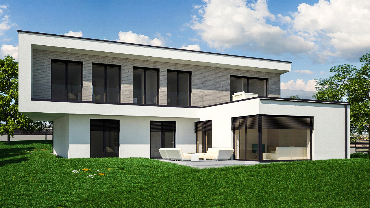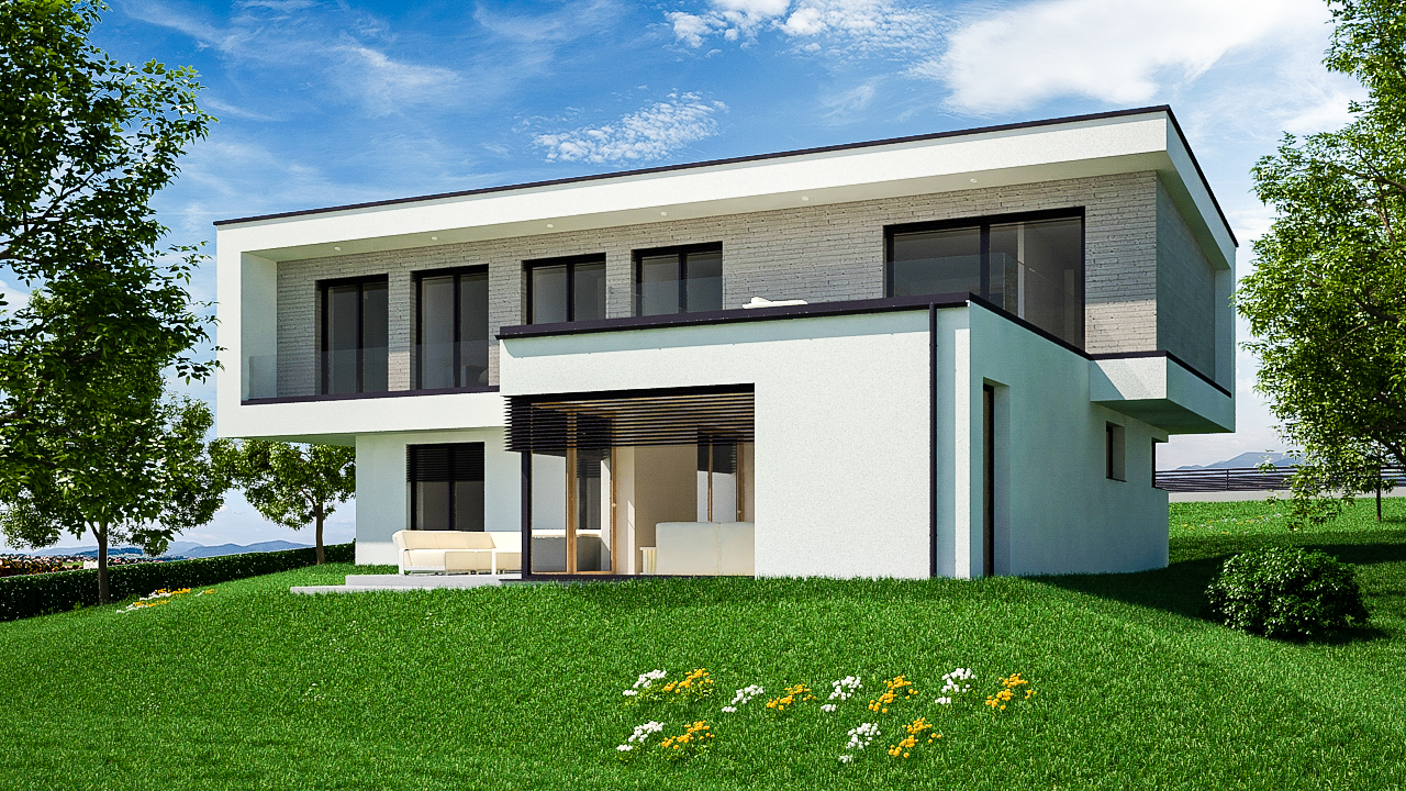 Programterv: 2600 Vác, dunai panorámás sarok telekre tervezendő 2 szintes energiatudatos családi ház 5 fő részére, modern minimalista stílusirányzatban. 2 gépjármű tárolása épületen belül.Megnevezés:
